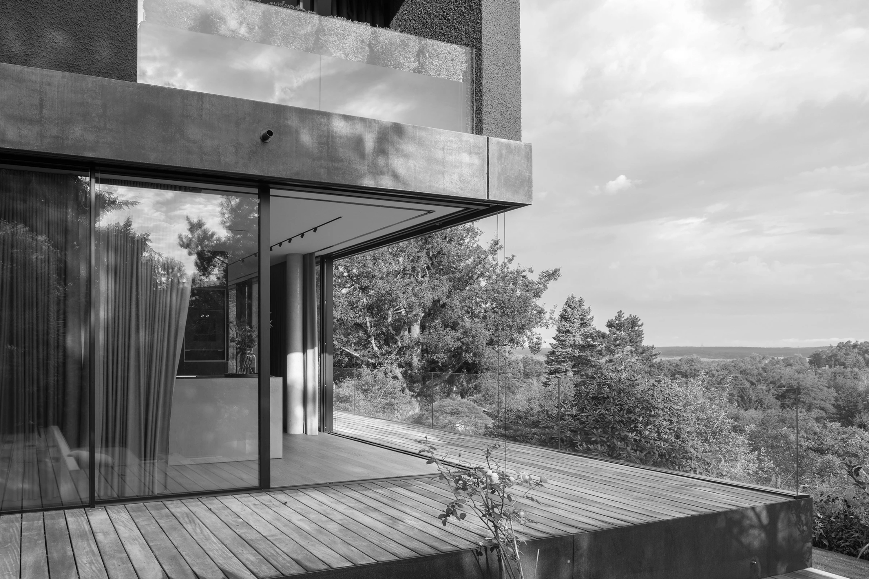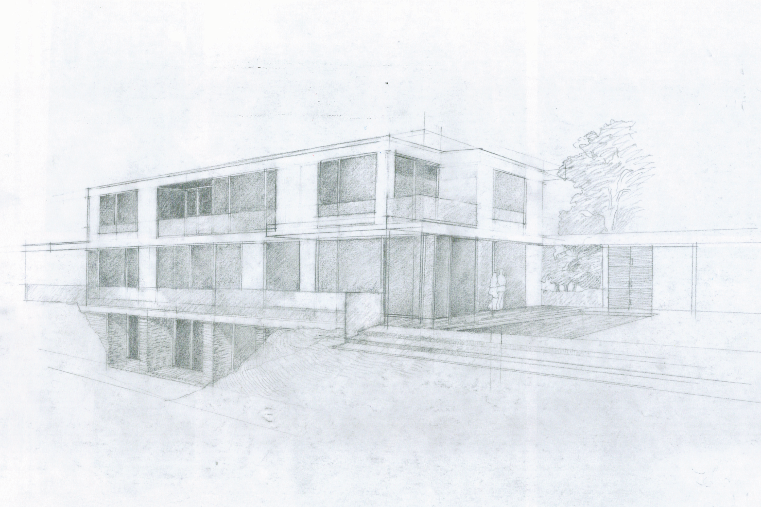 Dieses Einfamilienhaus, entworfen von Jörg Moser und Andreas Schindhelm, vereint moderne Architektur und anspruchsvollen Wohnbau in einer harmonischen Komposition. Das Gebäude liegt auf einem terrassierten Hanggrundstück und reagiert sensibel auf die Topografie. Die versetzten Rechteckvolumen schaffen eine spannende Architektur, die den Raum für gehobenes Wohnen optimiert und gleichzeitig eine enge Verbindung zum Außenraum herstellt.