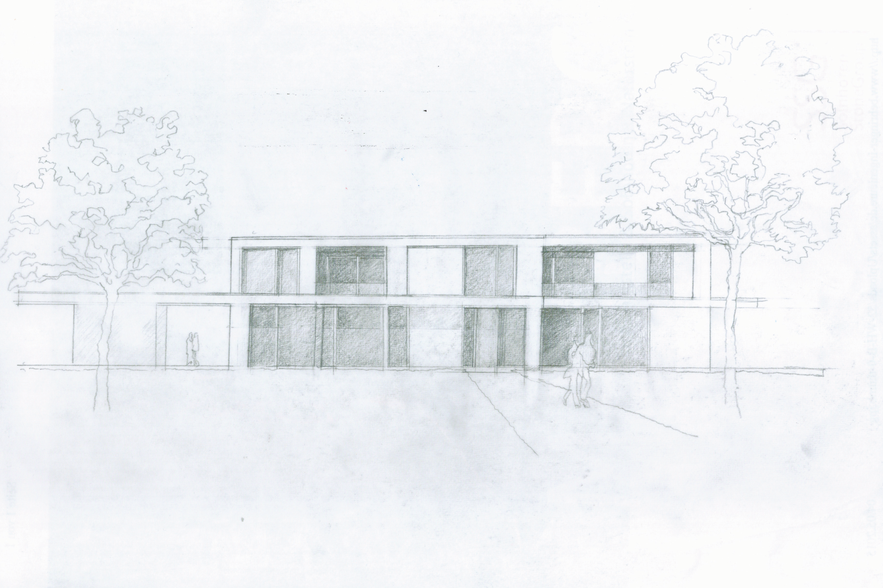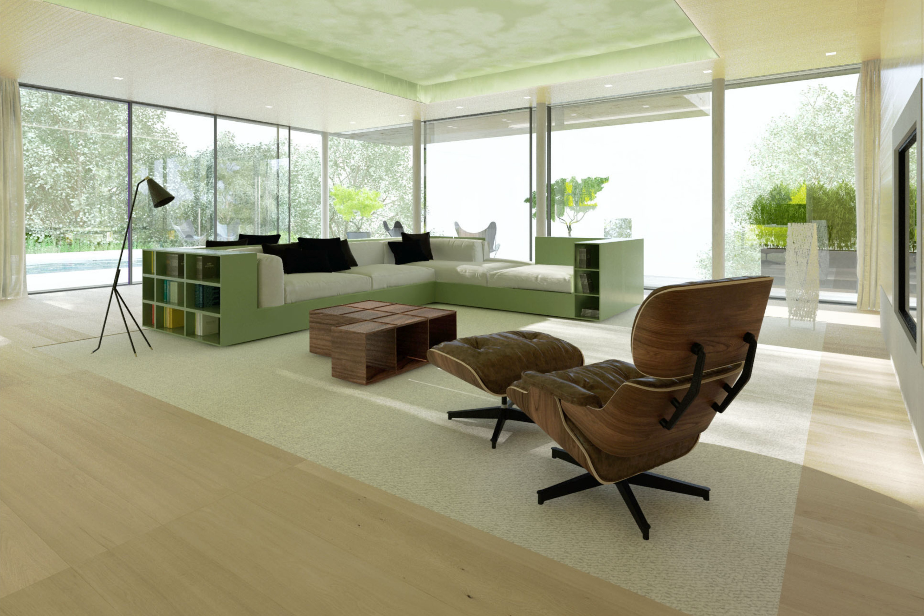 Das Obergeschoss springt als Staffelgeschoss zurück und öffnet sich mit großzügigen Loggien, die den Blick auf die umgebende Natur freigeben. Die Fensteröffnungen im Obergeschoss bieten einen gerahmten Blick in die malerische Landschaft und erweitern das Wohnen nach draußen. Große Vordachbereiche und Dachterrassen schaffen nahtlose Übergänge zwischen Innen- und Außenraum und setzen die horizontalen Gestaltungselemente in der Gartenarchitektur fort. Dieses Einfamilienhaus ist ein herausragendes Beispiel für gehobenen Wohnungsbau, der den Bedürfnissen des modernen Wohnen im Einklang mit der Natur gerecht wird. Es bietet eine perfekte Balance zwischen Wohnbauprojekten, die private Rückzugsorte und großzügige, offene Wohneinheiten schaffen. Die klare Struktur und das durchdachte Design machen es zu einem zeitgemäßen und funktionalen Wohnbau, der sowohl privaten Rückzug als auch ein offenes, geselliges Wohnen ermöglicht.